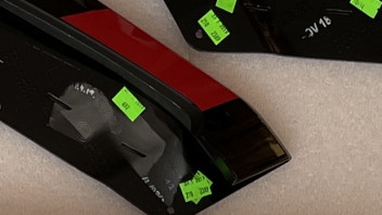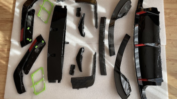 Die Teile sind teilweise mit weißem Stift oder Aufklebern beschriftet. Natürlich an den nicht sichtbaren Stellen. Was beim Heckspoiler schwierig ist…
