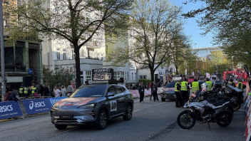 Bin gerade beim Haspa Marathon in Hamburg. Alle Begleitfahrzeuge von BYD.